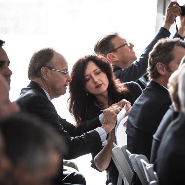 Ian McLachlan corrects Meliesa's speech before the unveiling
